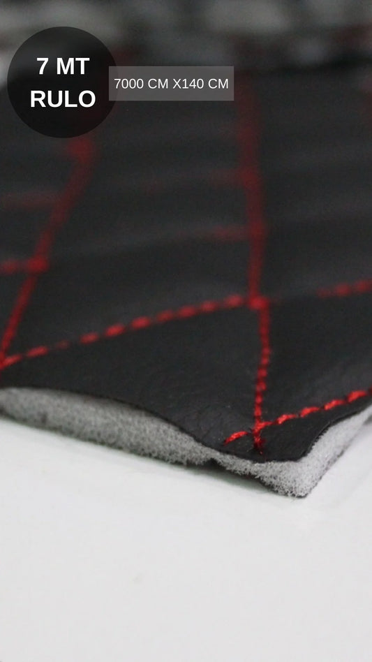 KAPİTONE DERİ SİYAH DERİ KIRMIZI NAKIŞ BAKLAVA DESEN 7M 7000 CM) - (ENİ 140 CM )
