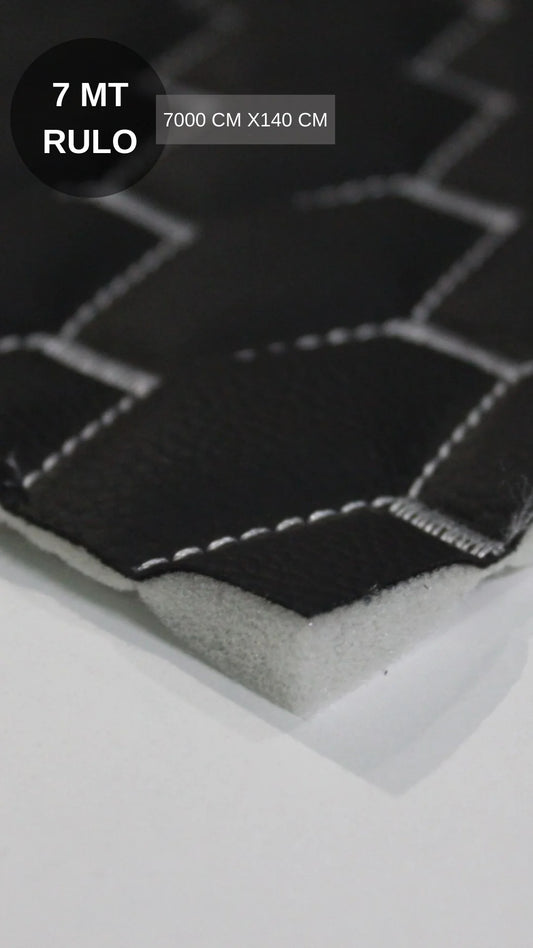 KAPİTONE DERİ SİYAH DERİ BEYAZ NAKIŞ PETEK DESEN 7MT(7000 CM) - (ENİ 140 CM )