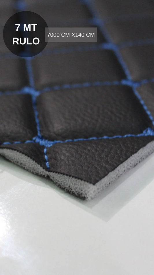 KAPİTONE DERİ SİYAH DERİ MAVİ NAKIŞ PRİZMA DESEN 7MT (7000 CM) - (ENİ 140 CM )